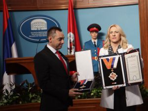 ![]() Сегодня, в День Республики, за заслуги в международном сотрудничестве, укреплении мира и вклад в развитие отношений между Сербией и Республикой Сербской Орденом знамени Сербской с золотым венком награжден министр обороны Сербии Александр Вулин. Такой же орден получил Народный театр Республики Сербской. Источник: ruserbia.com