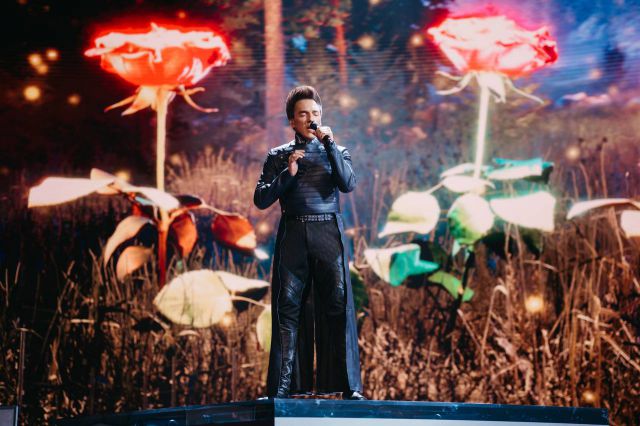 На конкурсе «Интервидение» в Москве сербский артист Слободан Тркуля представил зрелищное выступление |
